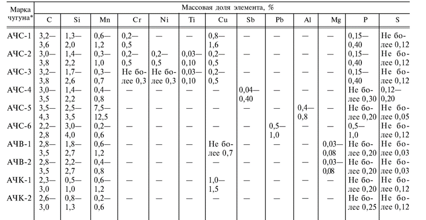 Марки антифрикционного чугуна